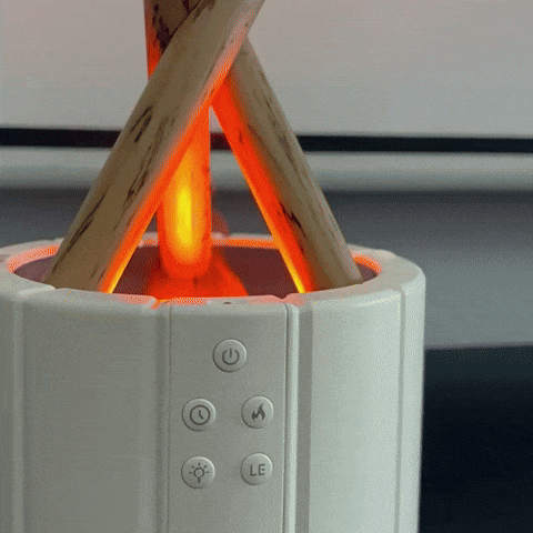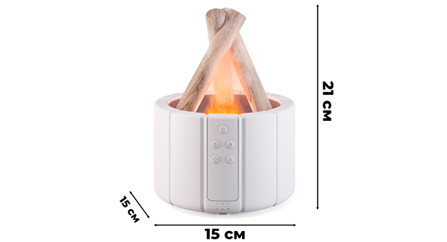 Зволожувач працює за принципом ультразвукової технології, що дозволяє йому тихо та ефективно розпилювати вологу, покращуючи якість повітря в приміщенні. Ефект пари підсилюється імітацією полум'я, додаючи візуальний елемент, який нагадує дим від багаття.