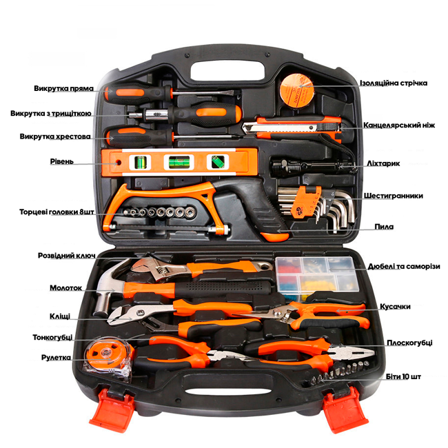 Набір не тільки спрощує виконання ремонтних та монтажних робіт, але й допомагає підтримувати порядок і організованість у вашому робочому просторі.