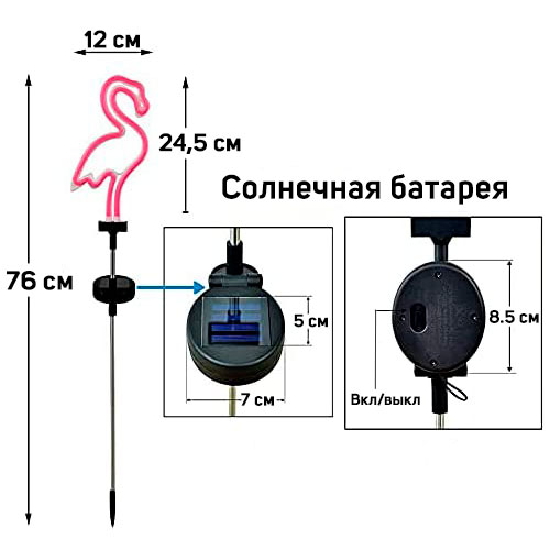 Садовый неоновый светильник Фламинго на солнечной батарее